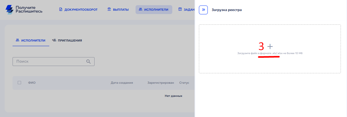 3. Загрузите подготовленный реестр, нажав на значок «+»