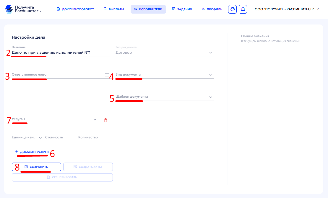 - Если вы подписываете разовые договоры, укажите стоимость и количество сразу.
