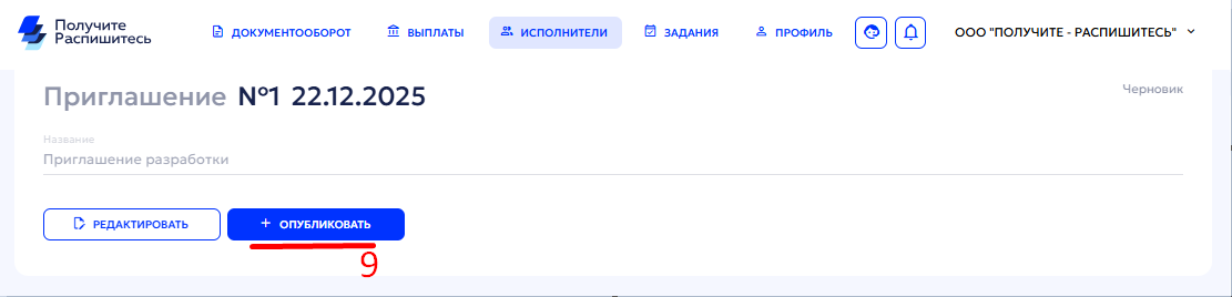 - В разделе «Исполнители» перейдите на вкладку «Приглашения»