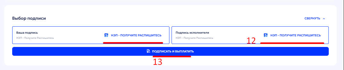 13. Нажмите «Подписать» или «Подписать и выплатить» — в зависимости от того, включена ли автоматическая выплата.