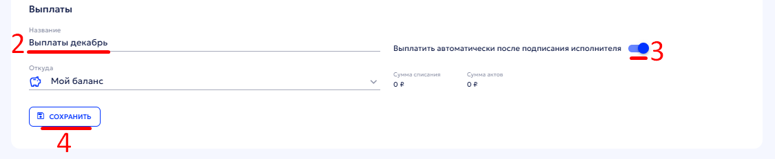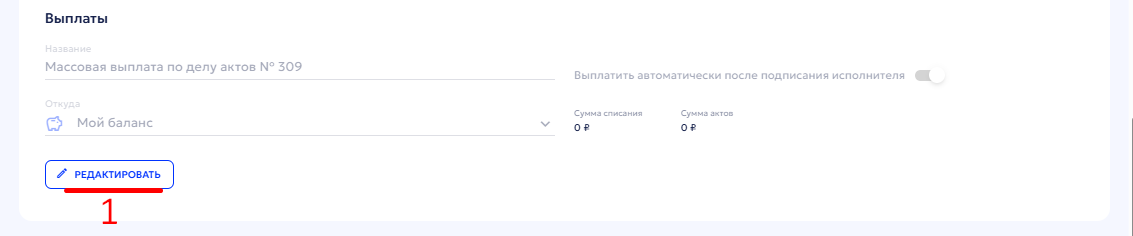 3. При отключении автоматической выплаты вам потребуется самостоятельно отслеживать подписание акта исполнителем и выполнять выплату вручную, с помощью кнопки «Выплатить» внутри соответствующей выплаты.