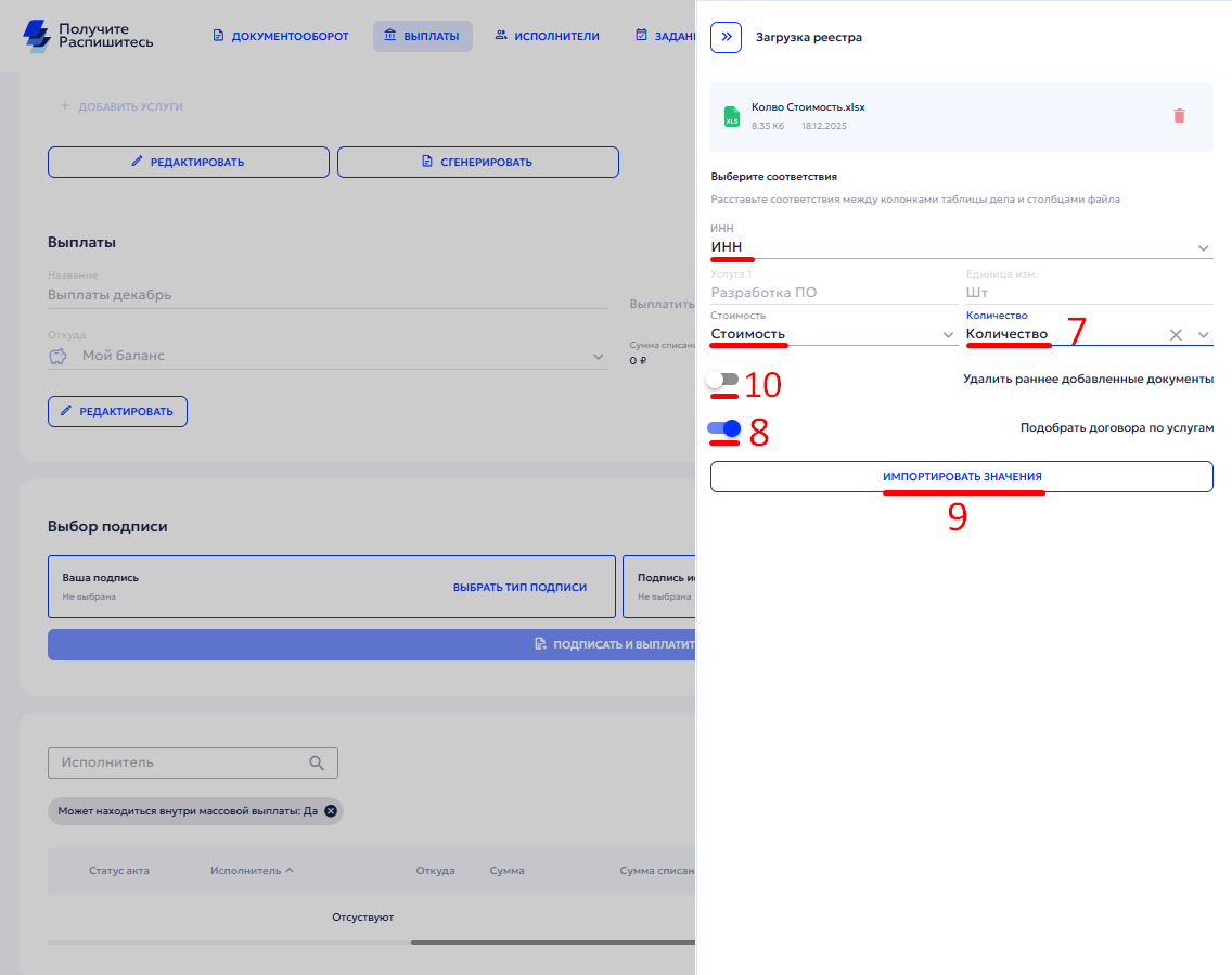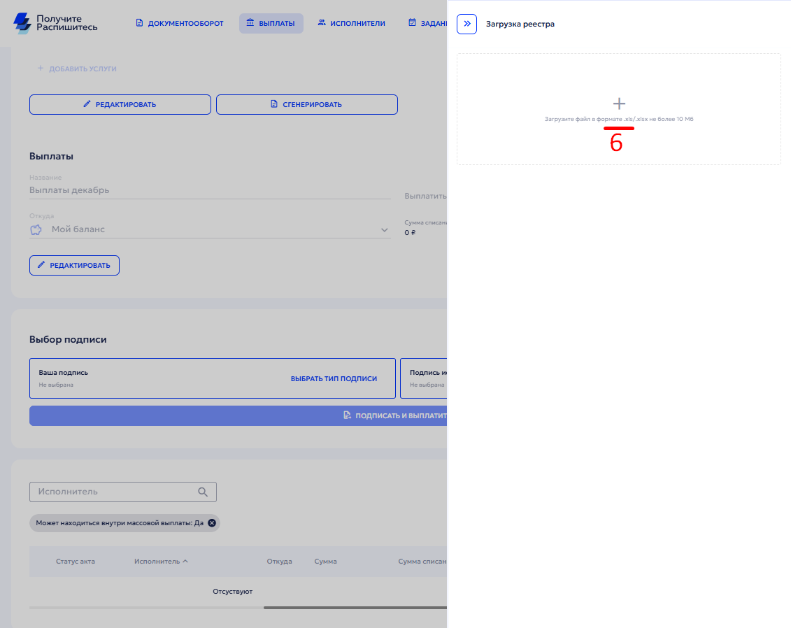 Загрузка реестра выплат